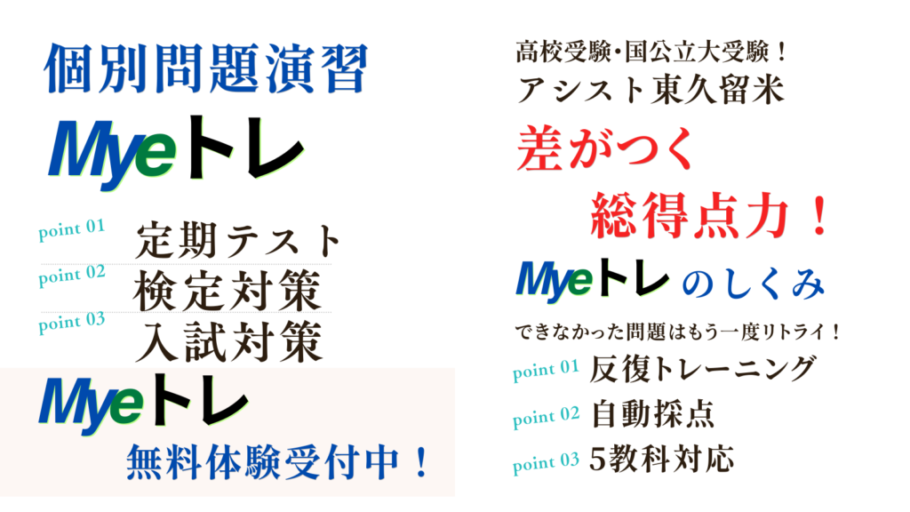 ※ 追加教材Myeトレ¥3,300円/月~英語(英文法、リスニング、英検)